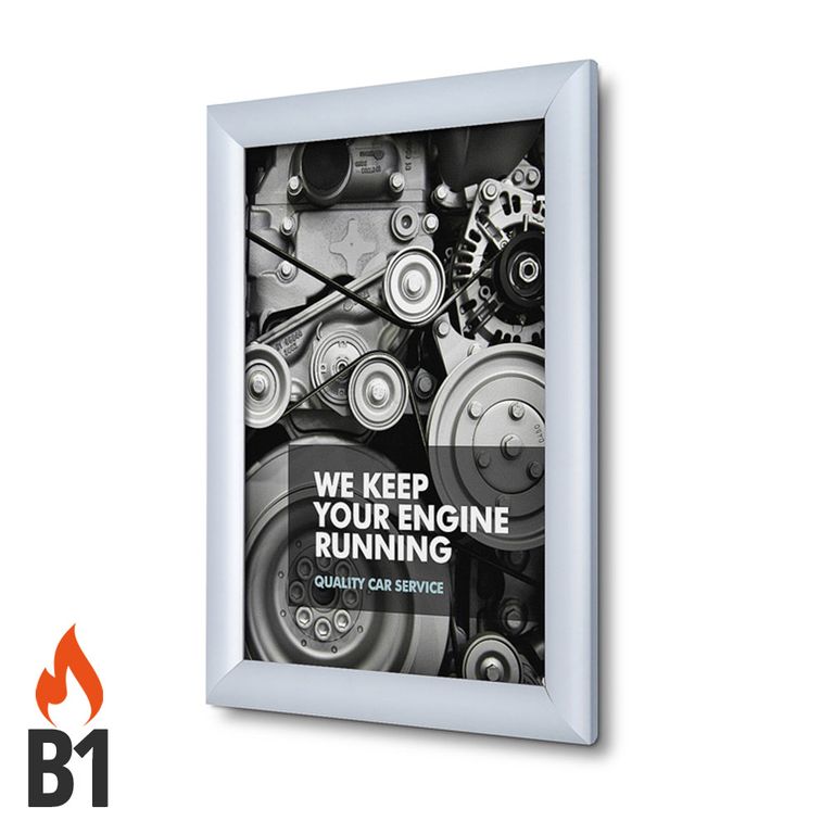 Der Klapprahmen Secure von Knettenbrech in Wiesbaden ermöglicht Ihnen die Werbung in Bereichen mit besonderen Anforderungen (Fluchtwege, Schulen, Kaufhäuser und vielen weiteren öffentlichen Gebäuden). Die B1-Zertifizierung des Rahmens erfolgt nach DIN 4102 und verspricht Ihnen somit eine hohe Zuverlässigkeit in unser Produkt. Die Rückwand des Klapprahmens besteht aus verzinktem Metall. Ausgestattet ist er zudem mit der speziellen, UV-beständigen Antireflex-Folie, durch die Ihre Werbebotschaft trotz Lichteinfall lesbar bleibt und vor dem Ausbleichen geschützt ist.