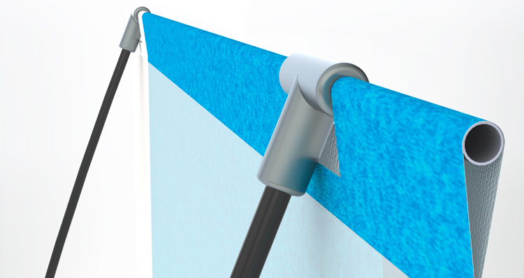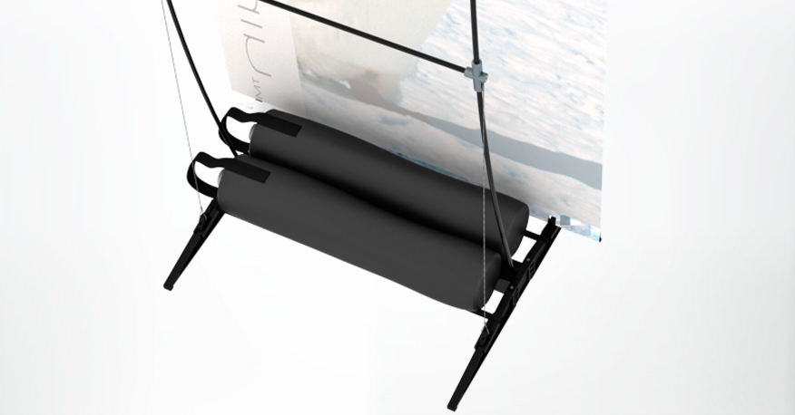 Extrem klein verpackbares und leichtes Outdoor Display für Informationsveranstaltungen und Werbeauftritte jeglicher Art: Sportveranstaltungen, Events, Promotions, Messen, außerhalb von Shops usw.
