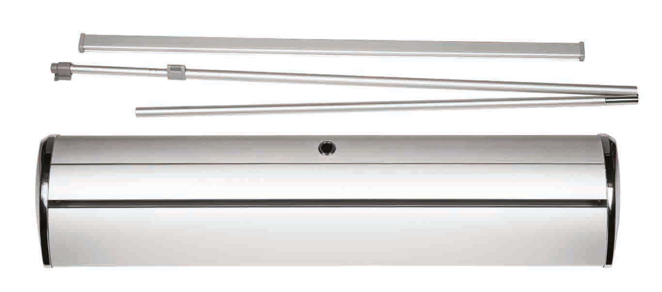 Mit dem Roll-Up Banner von Knettenbrech in Wiesbaden erhalten Sie ein Banner aus der Standard-Reihe. Dieser ist Silber eloxiert und kommt mit einer Klemmschiene sowie verchromte Endkappen daher. Die beiden verchromten Endkappen stechen bei diesem System besonders hervor und verleihen Ihnen einen exclusiven Auftritt. Auch für Messen, Events, Ausstellungen, Werbeaktionen und Ähnliches eignet der Roll-Up Banner sich ideal, denn er kann einfach und bequem in der mitgelieferten Transporttasche transportiert werden.