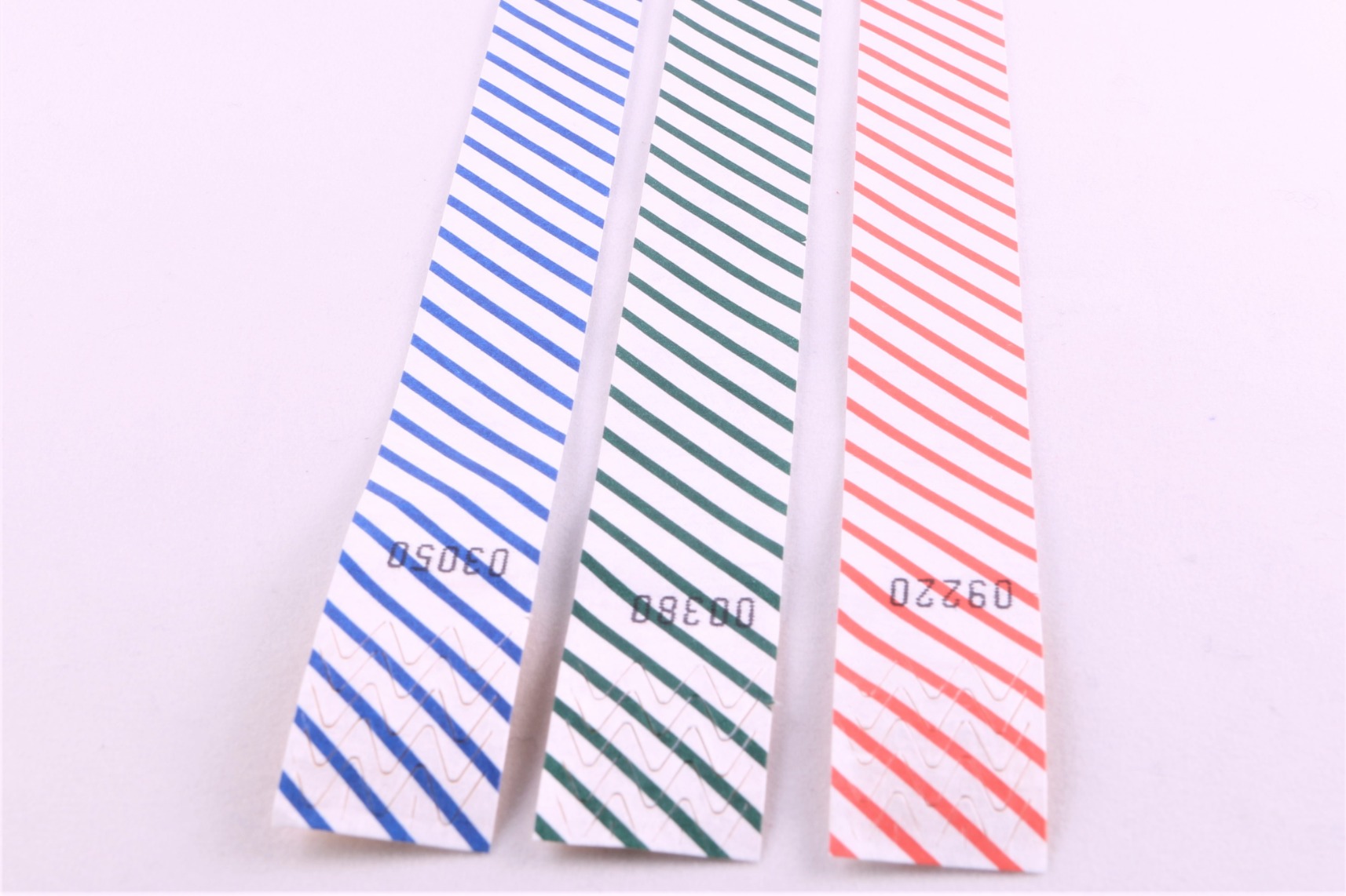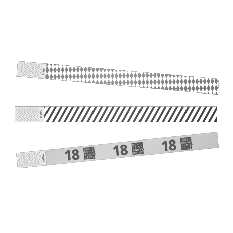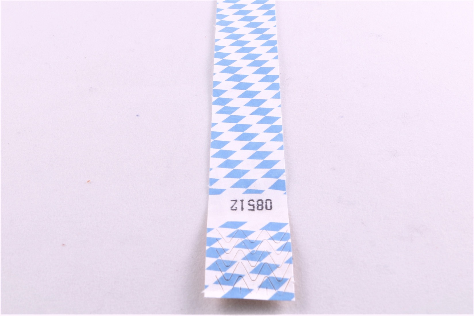 Die praktischen Einlassbänder aus papierähnlichem und reißfestem Tyvek mit vorgefertigten Motiven von Knettenbrech in Wiesbaden werden mit einem Klebestreifen verschlossen. Beim Öffnen des Klebestreifens wird die Perforation am Band zerstört. Somit sind unsere Tyvek-Bänder genau so sicher wie Einlassbänder mit Plastik-Verschluss und nicht übertragbar.